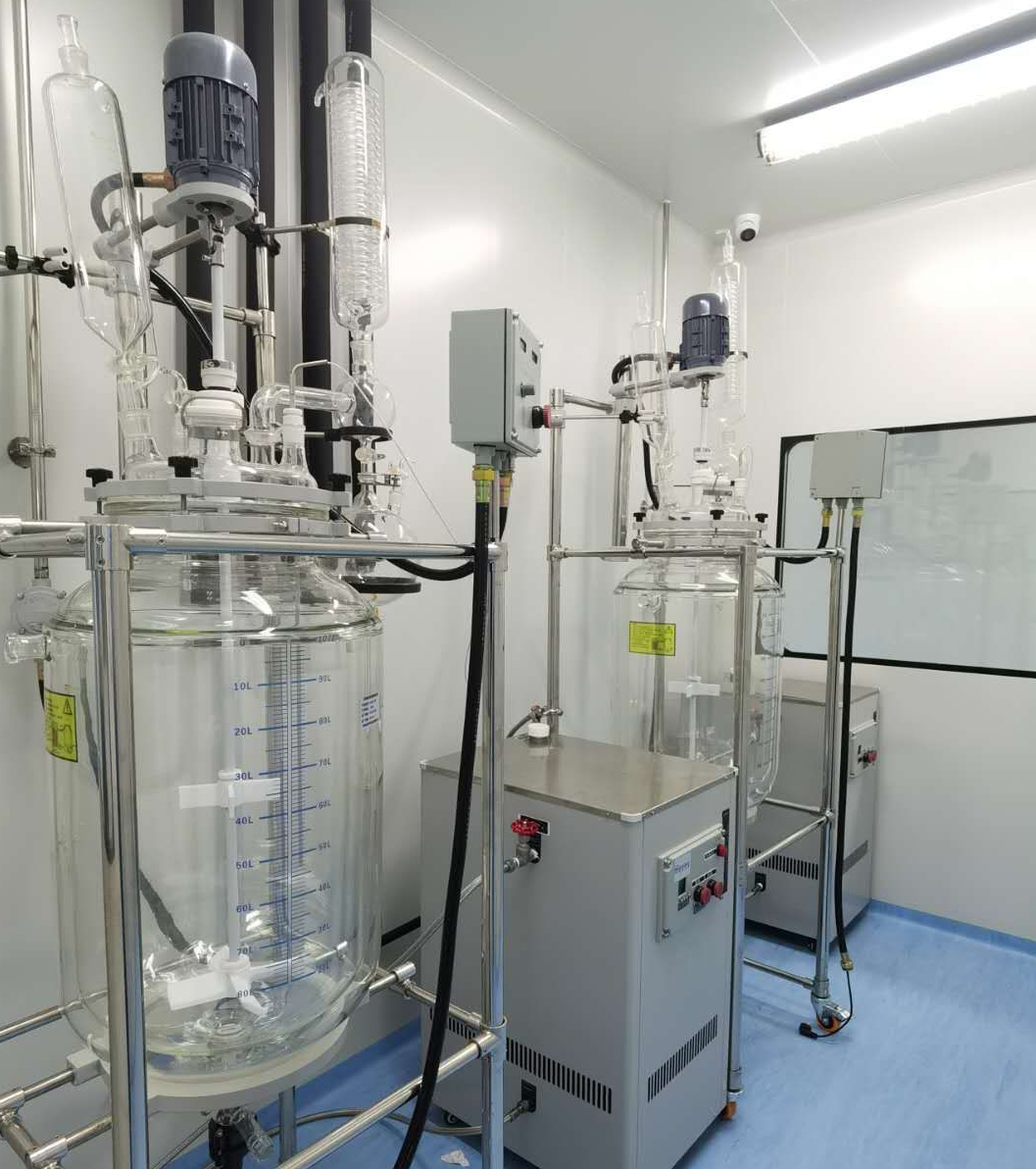 華清光電建設(shè)有2600平米合成車間,一個500平米標(biāo)準化潔凈車間,兩個中試級實驗室,各類反應(yīng)釜80多臺,可以滿足零下100度至200度反應(yīng)條件,設(shè)計年產(chǎn)能為50噸,可同時開展20個以上生產(chǎn)項目。